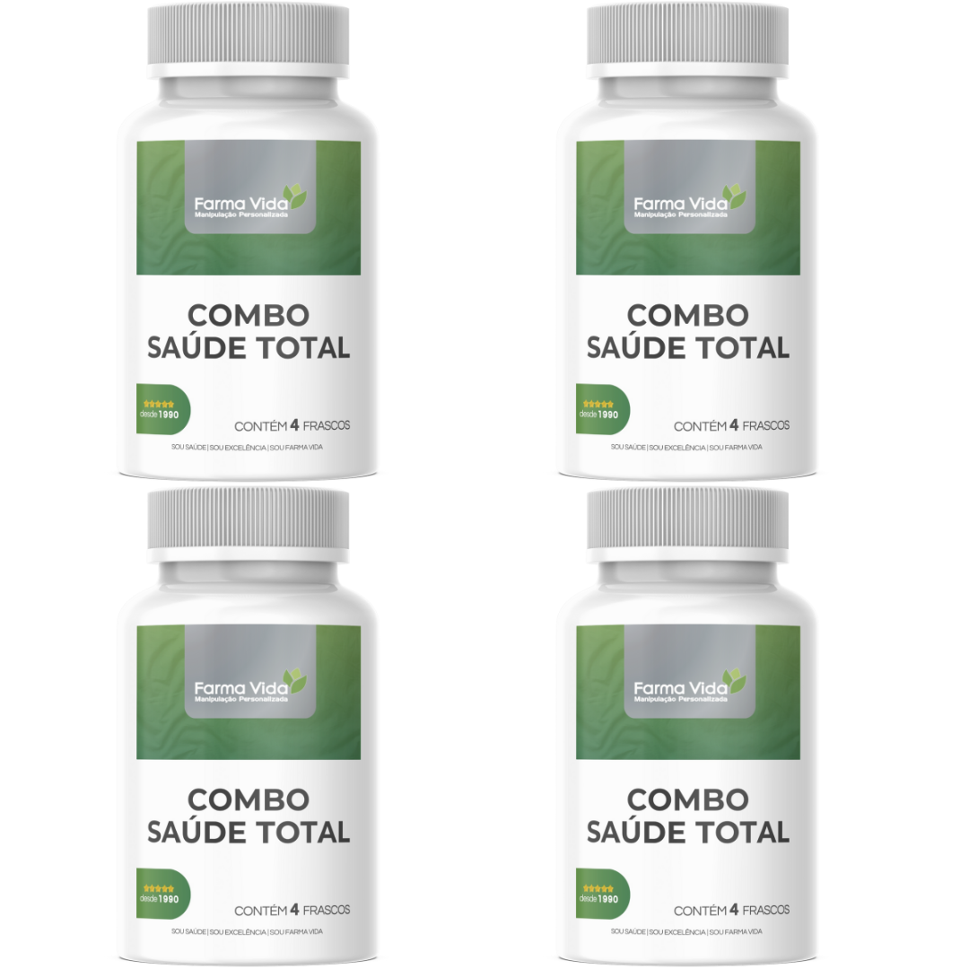 Combo Saúde Total é composto por 4 frascos que, por meio de várias vias, otimizam e potencializam a saúde em diferentes aspectos.
